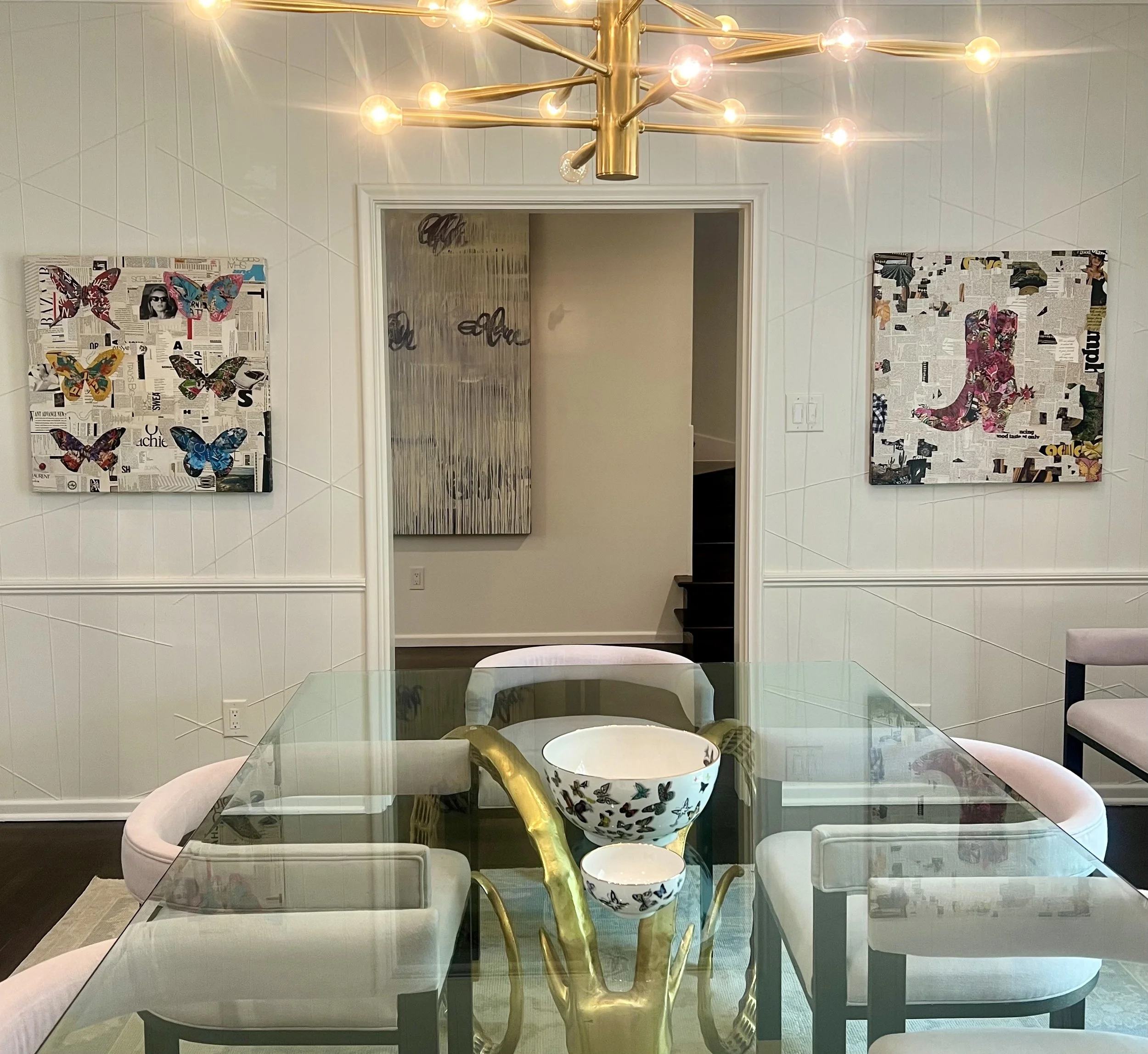 The background tells its own tale, a layered tapestry of Western nostalgia drawn from vintage pages. Look closer, and you’ll find treasures like a 1970s Playboy magazine cover in the upper-right corner, where a cowgirl’s timeless allure captivates the eye. This is more than a collage—it’s a celebration of bold contrasts, where high fashion and rugged Americana collide in a dance of artistry and storytelling.