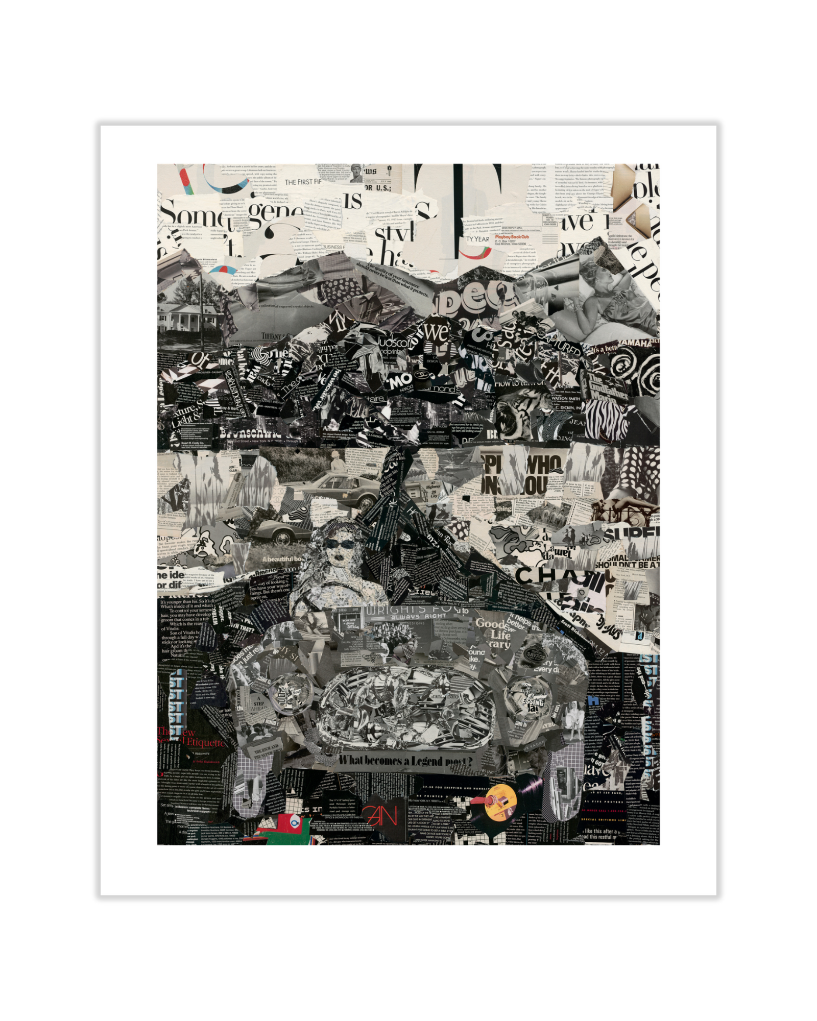 Unframed archival print of ‘Boot Scootin’, original art by artist Ashley Beebe, featuring an acrylic collage.